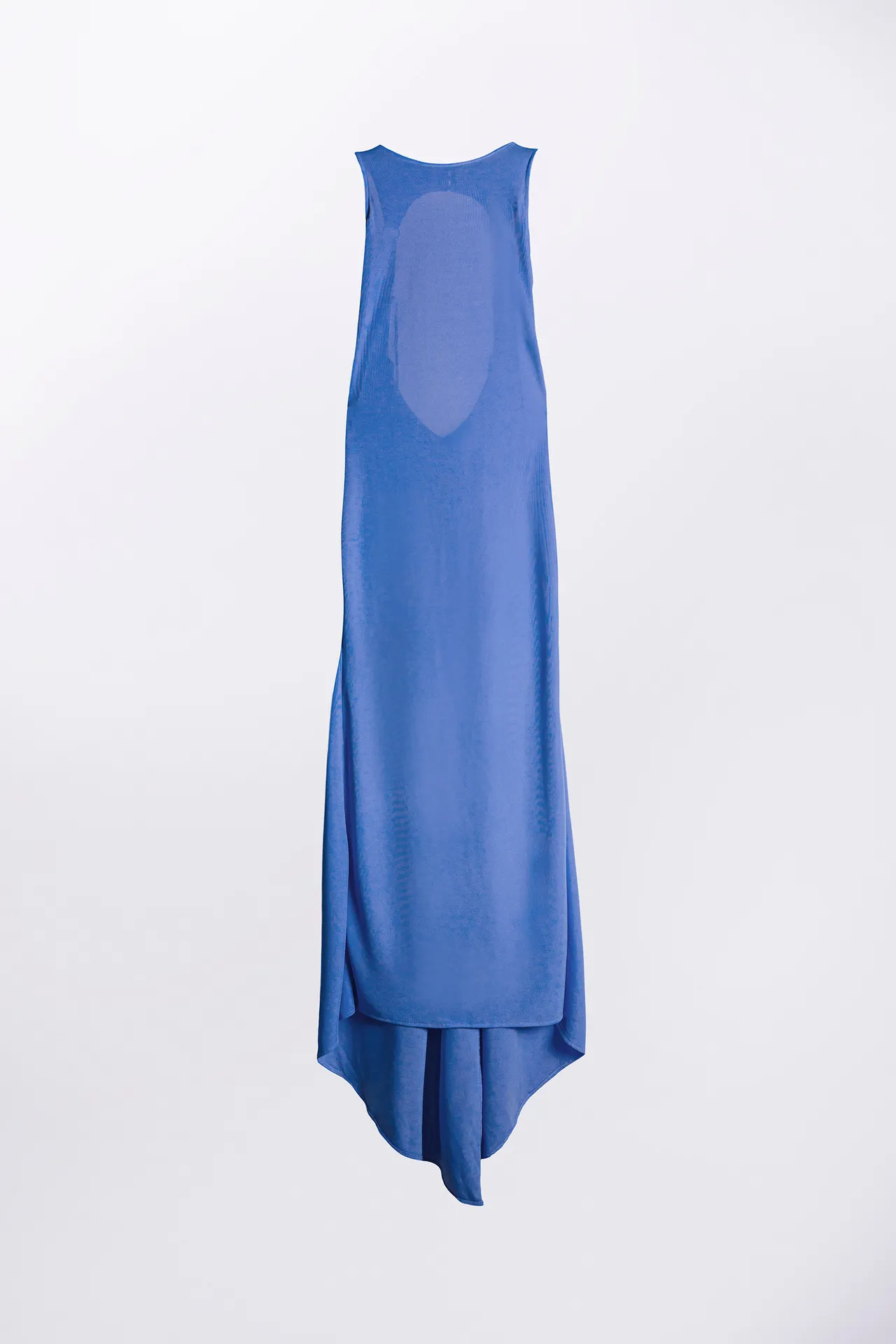 Abito lungo aderente in jersey stretch con scollo classico e spalle scoperte. Vestibilità avvolgente.