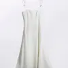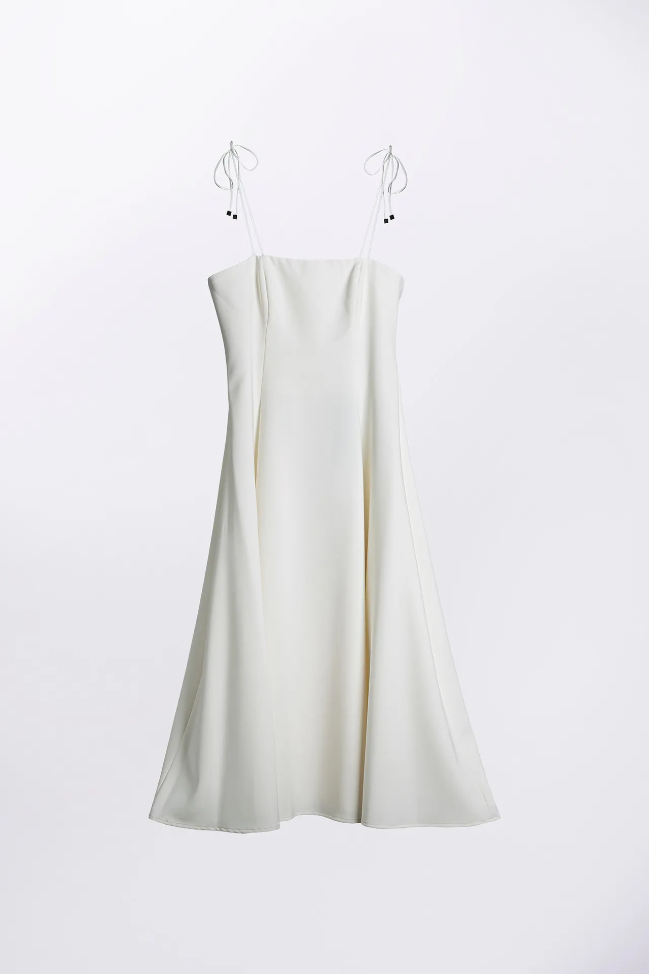 Abito midi in tessuto con scollo leggermente drappeggiato e sottili spalline regolabili. Taglio svasato al fondo. Chiusura invisibile sul fianco. Vestibilità regolare.