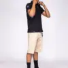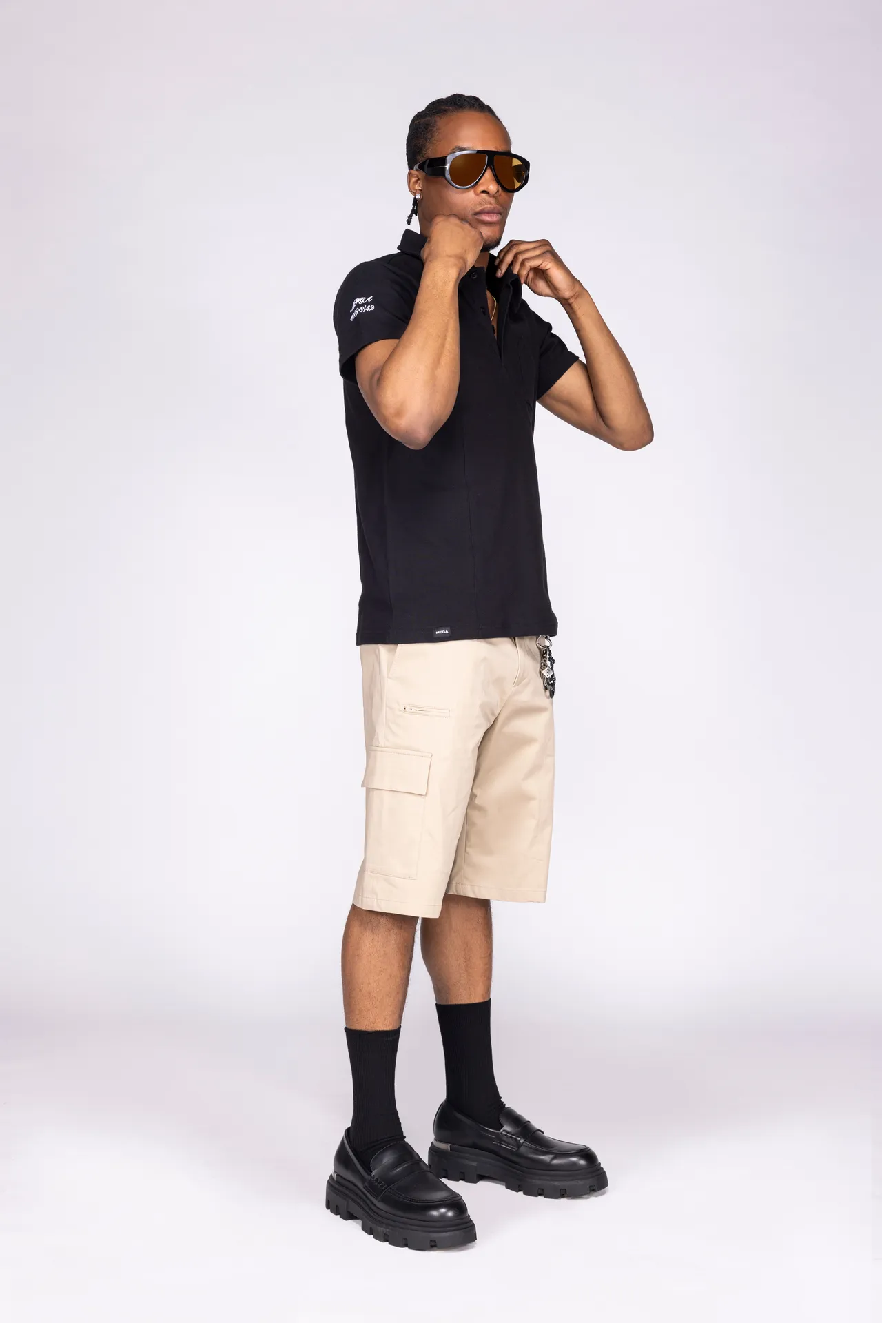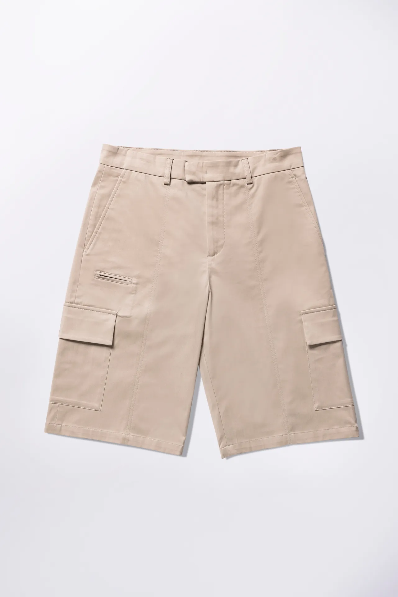 Bermuda cargo in tessuto 97% cotone e 3% elastan con tasche laterali applicate, tasca con zip invisibile e tasche oblique sui fianchi. Passanti in vita e chiusura con bottone e zip nascosta. Vestibilità regular.