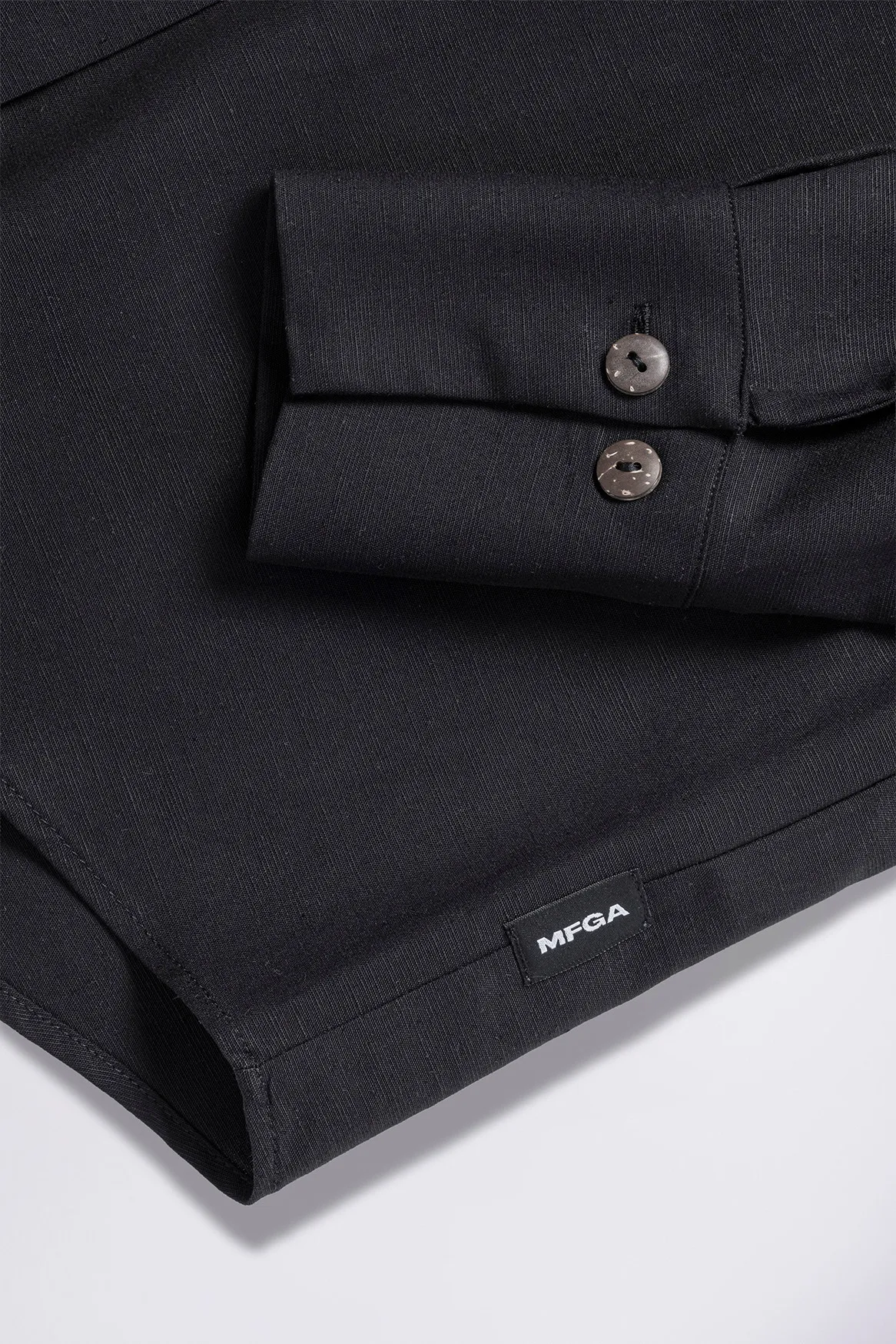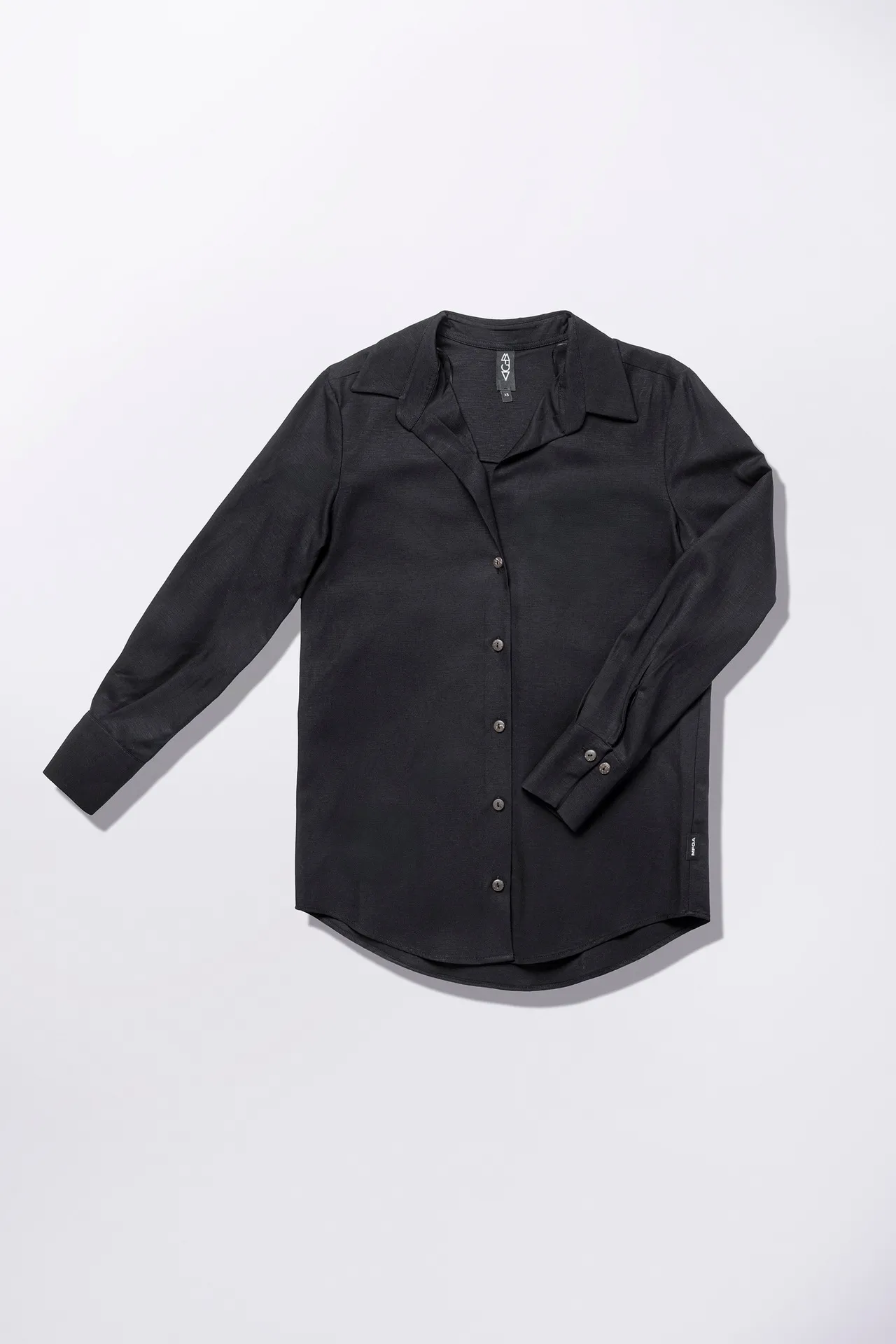 Camicia a maniche lunghe in viscosa leggera, con collo bowling e abbottonatura frontale. Vestibilità morbida e polsini alti con bottone.