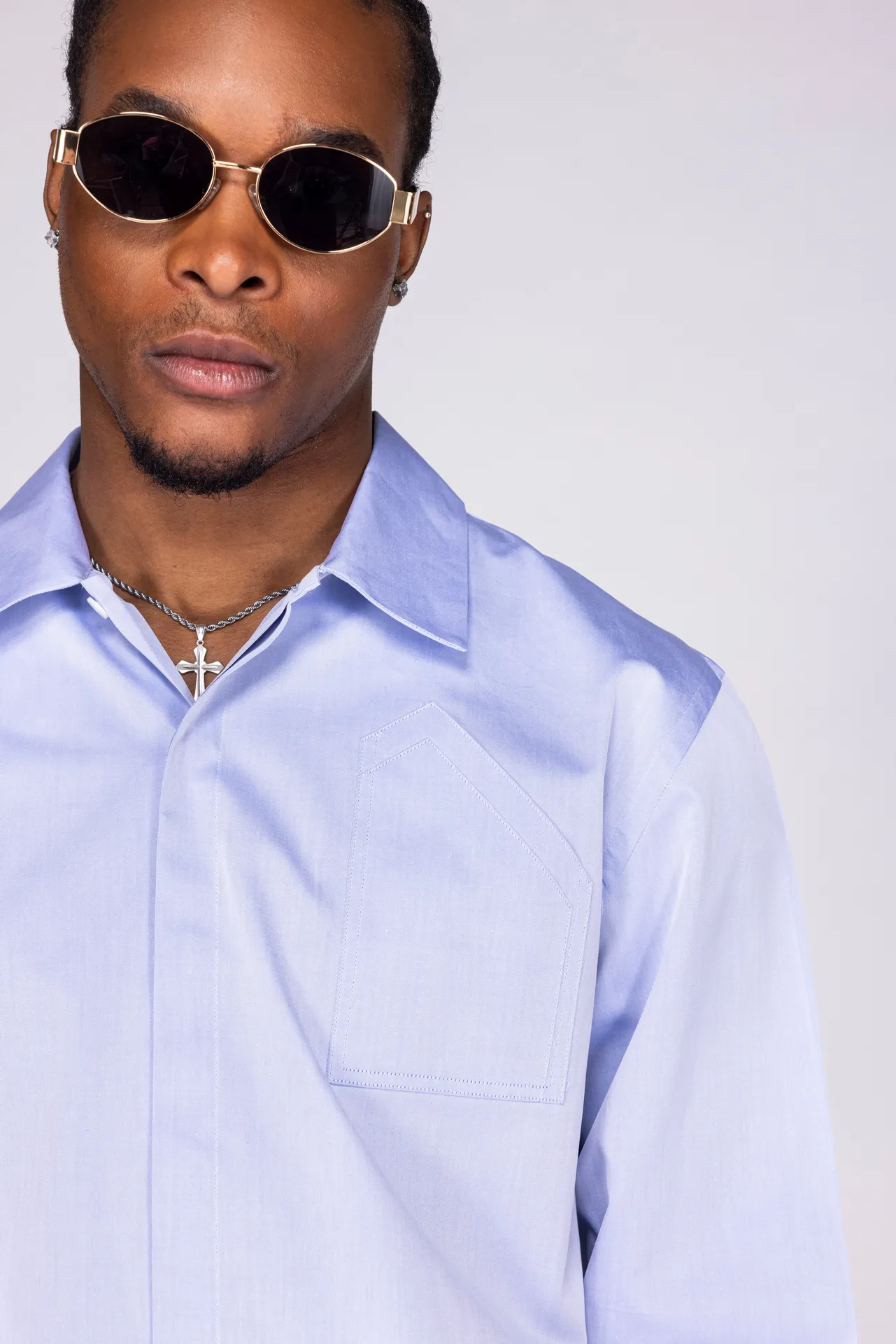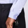 Camicia a maniche lunghe in 100% cotone con colletto classico e abbottonatura frontale nascosta. Taschino doppia tasca applicata sul petto, polsini con doppio bottone e ricamo MFGA 10098/42 tono su tono sul polsino destro. Vestibilità regular.