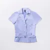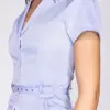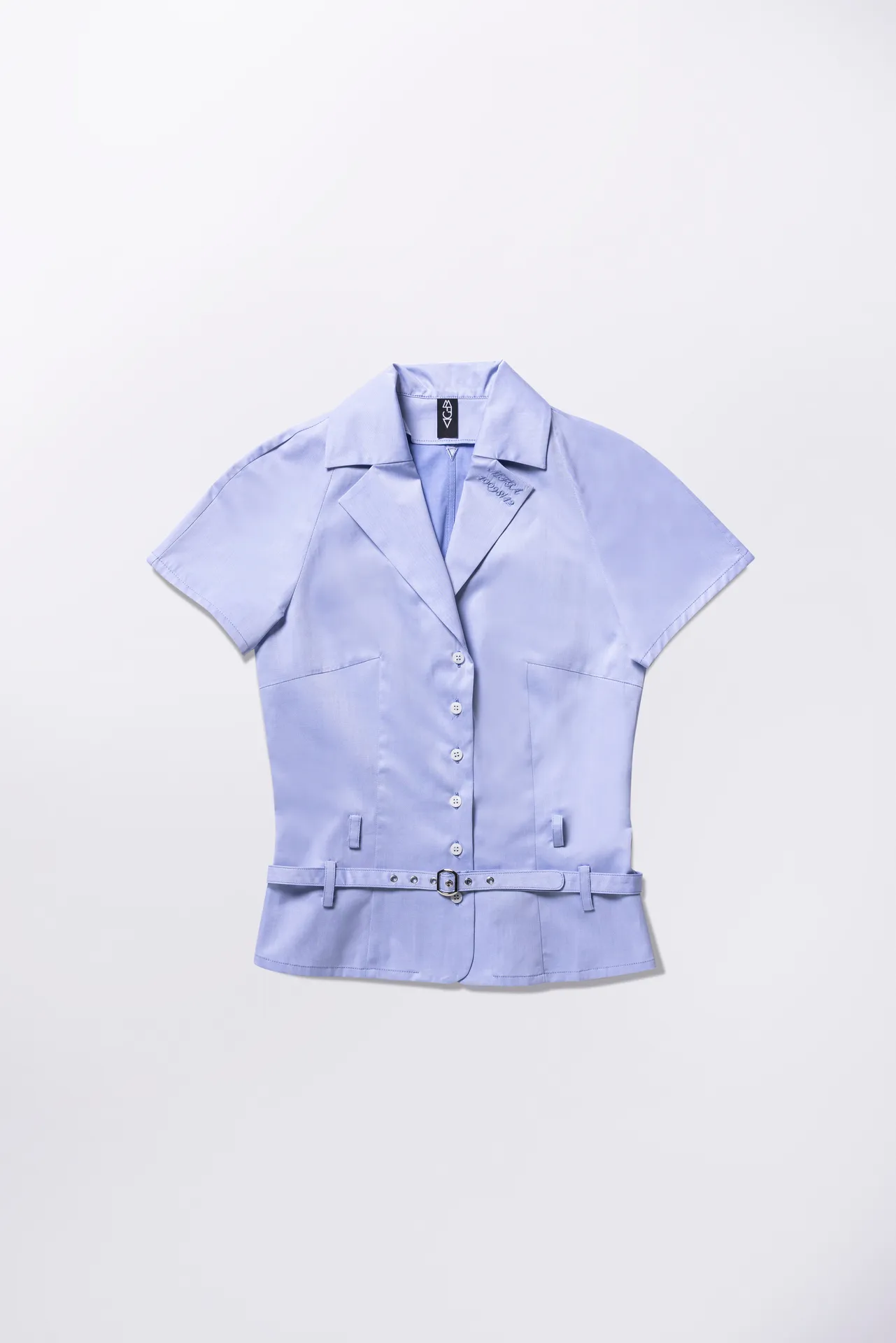 Camicia a maniche corte in 100% cotone con colletto a lancia e abbottonatura frontale. Cintura abbinata con passanti applicati in vita e ricamo MFGA 10094/49 tono su tono sul colletto. Vestibilità sagomata.