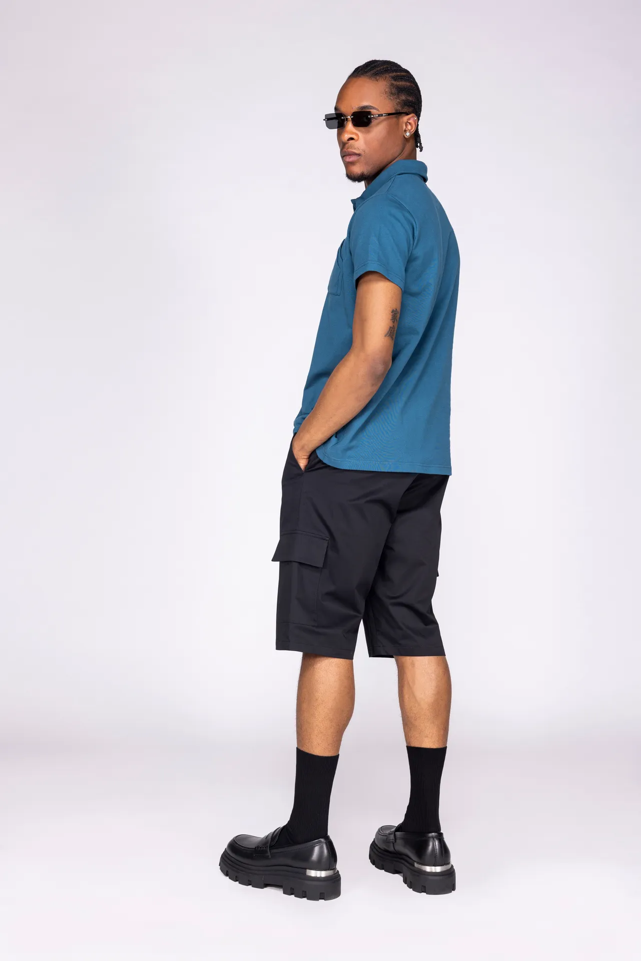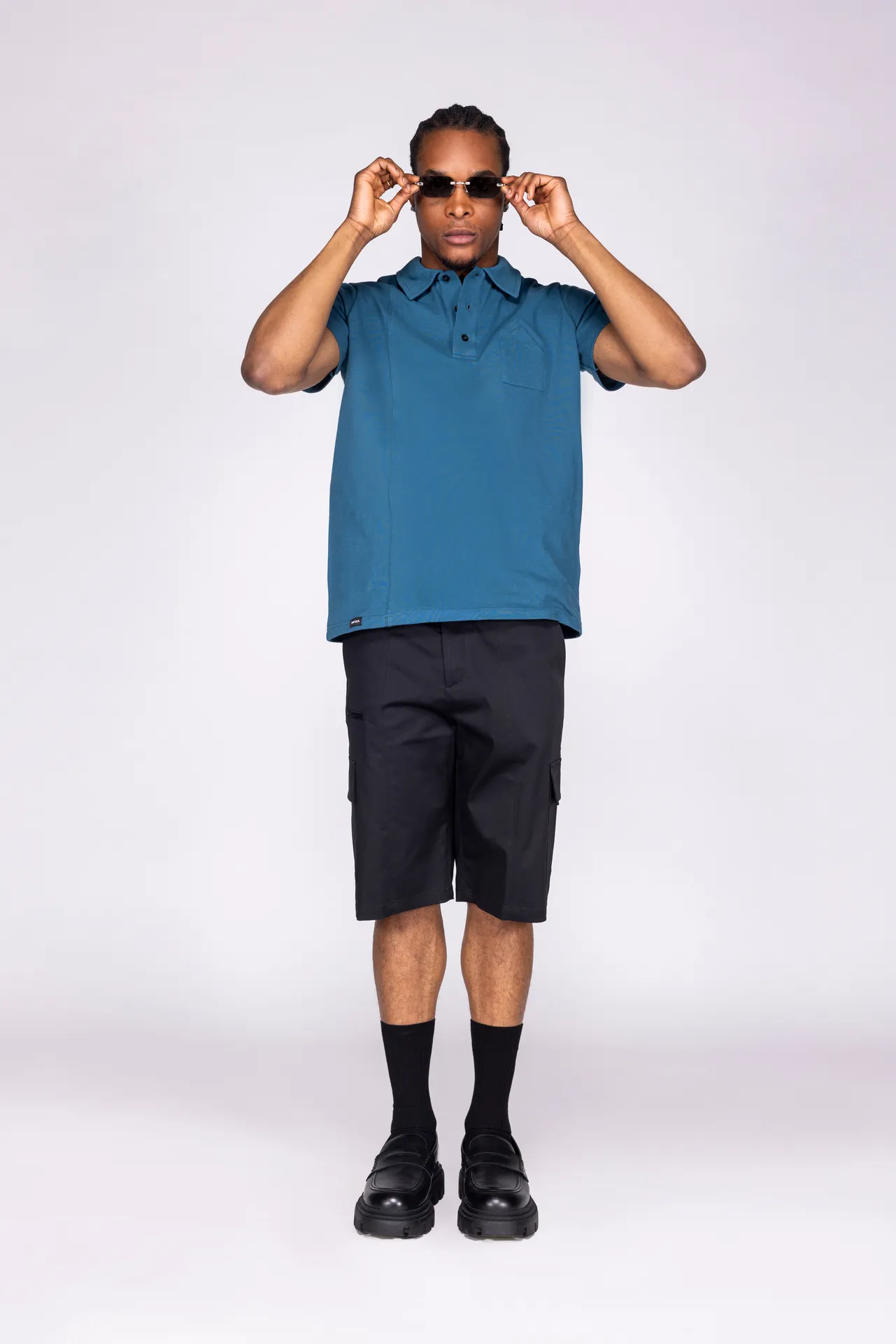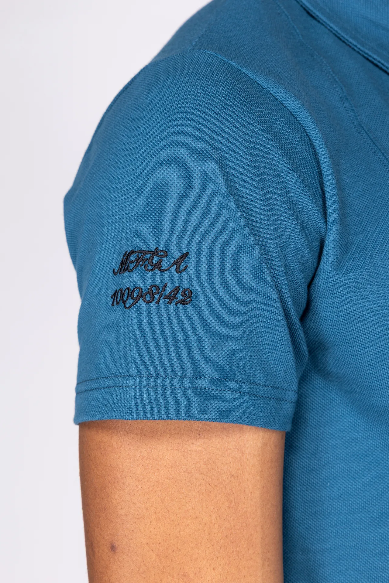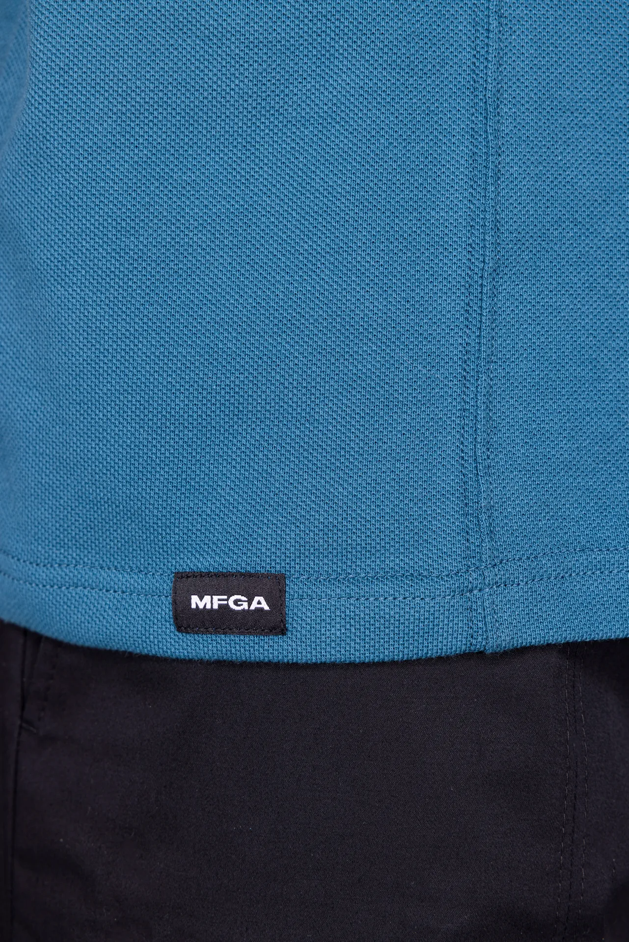 Polo in 100% cotone con colletto classico e abbottonatura a tre bottoni. Doppia tasca applicata sul petto con costruzione geometrica. Ricamo MFGA a contrasto sulla manica destra ed etichetta applicata sul fondo. Vestibilità regular.