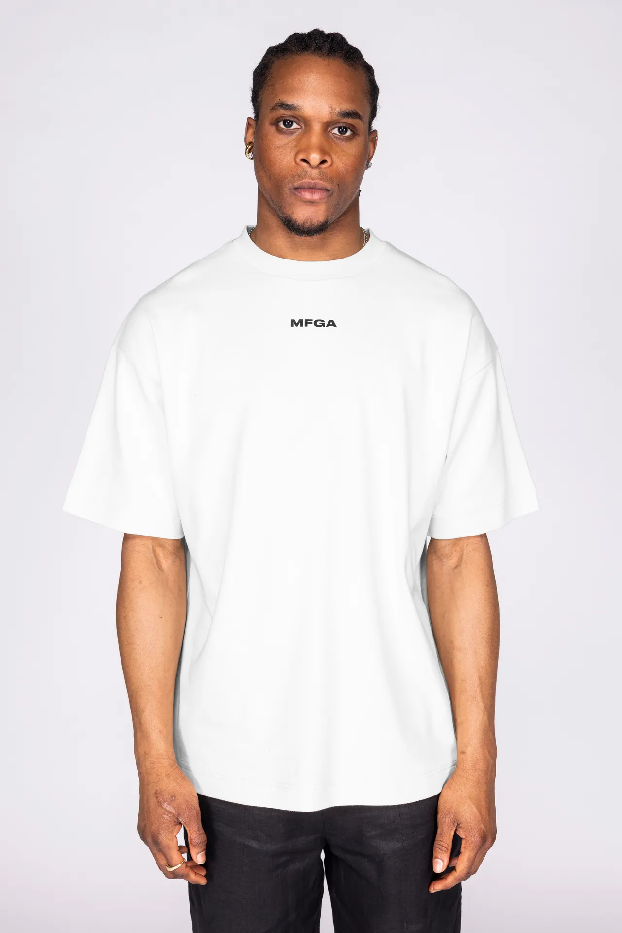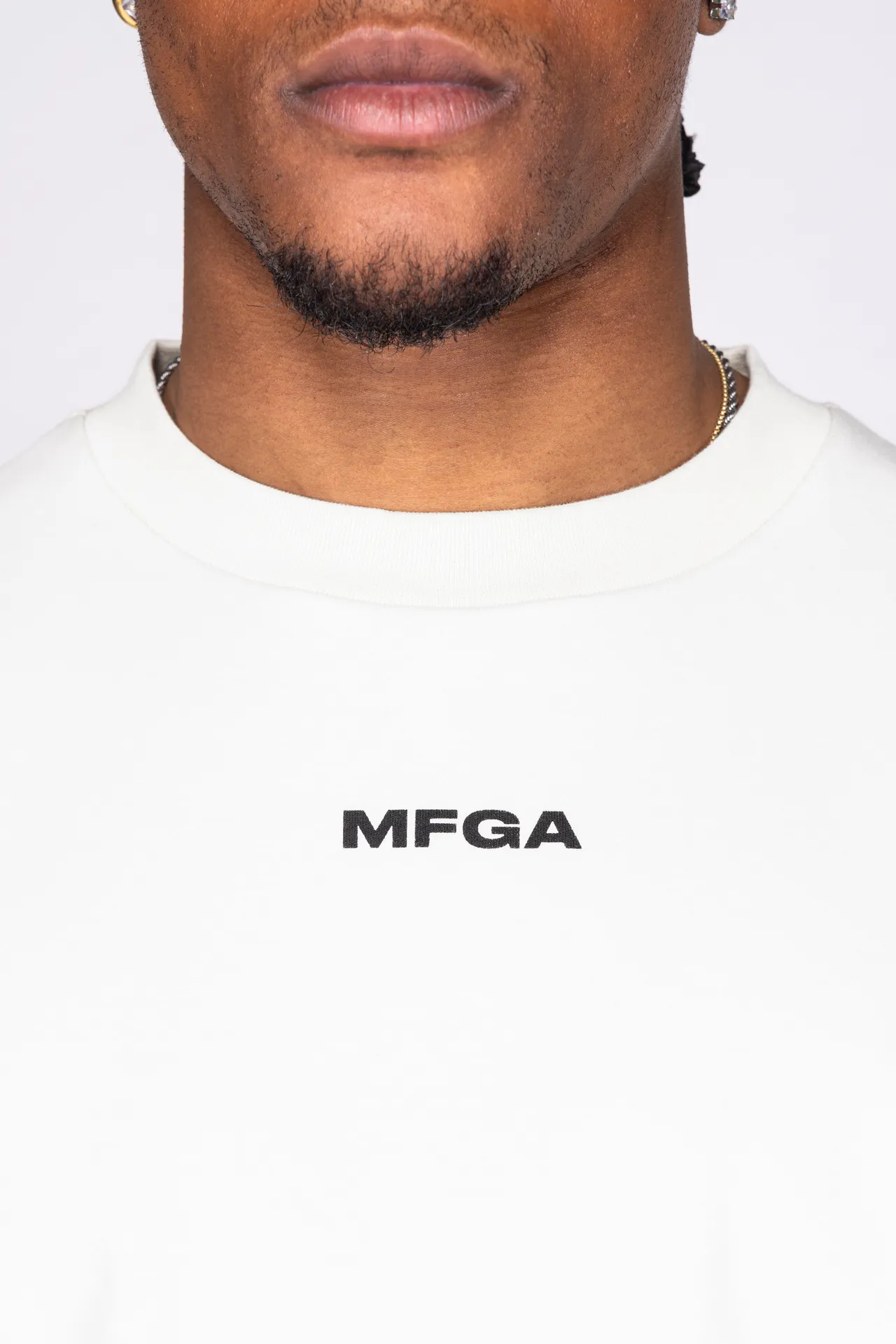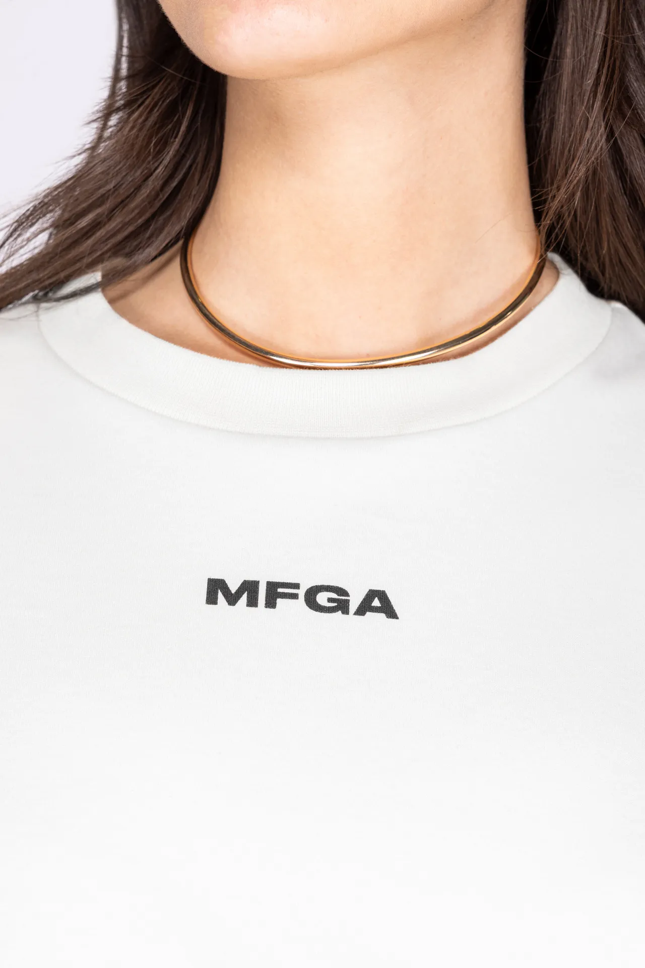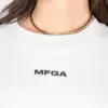 T-shirt girocollo in 100% cotone con logo MFGA stampato sul petto.