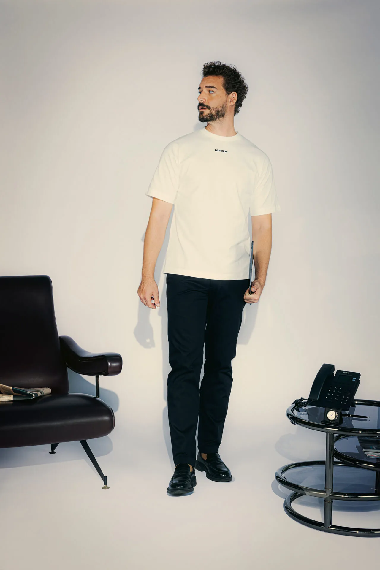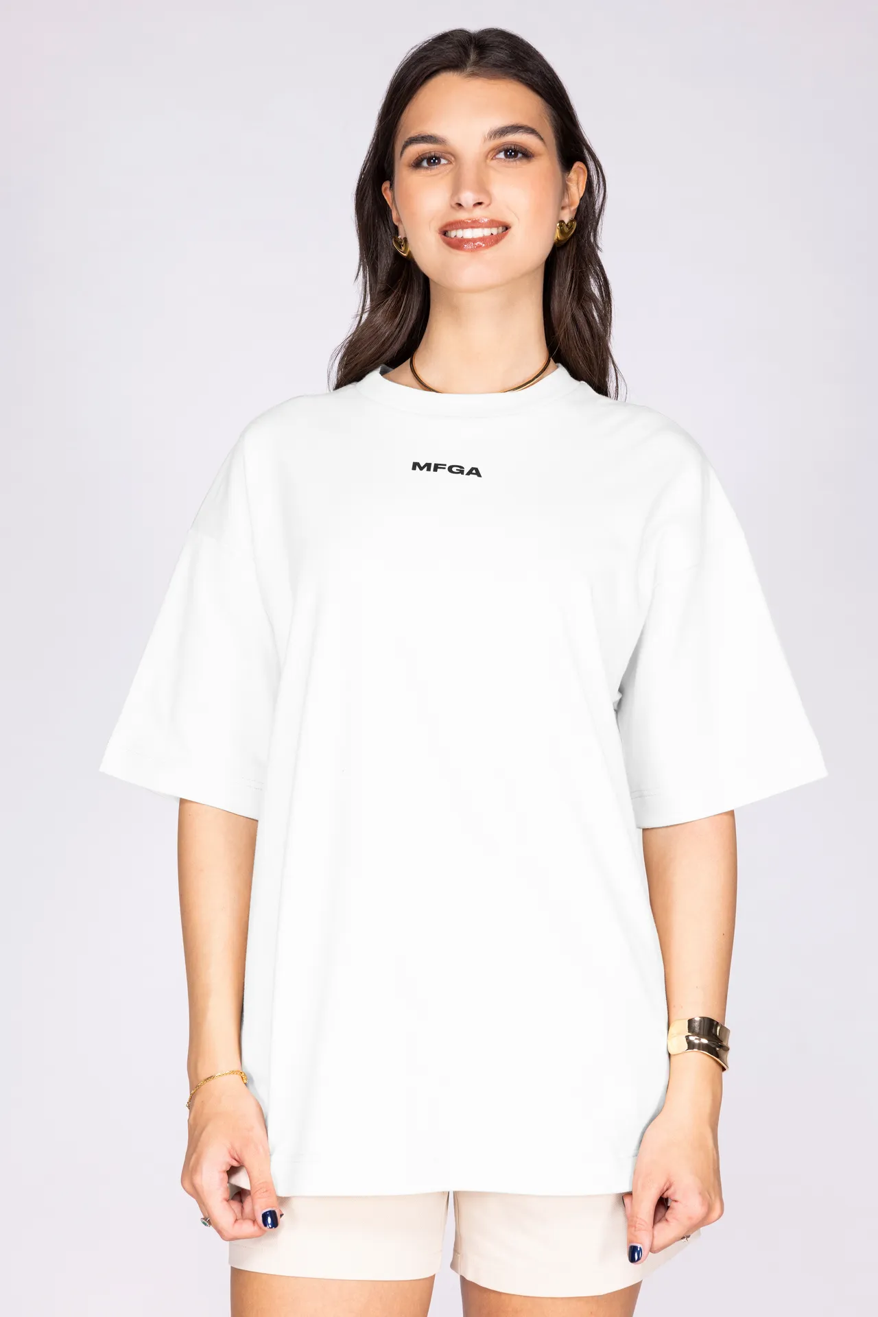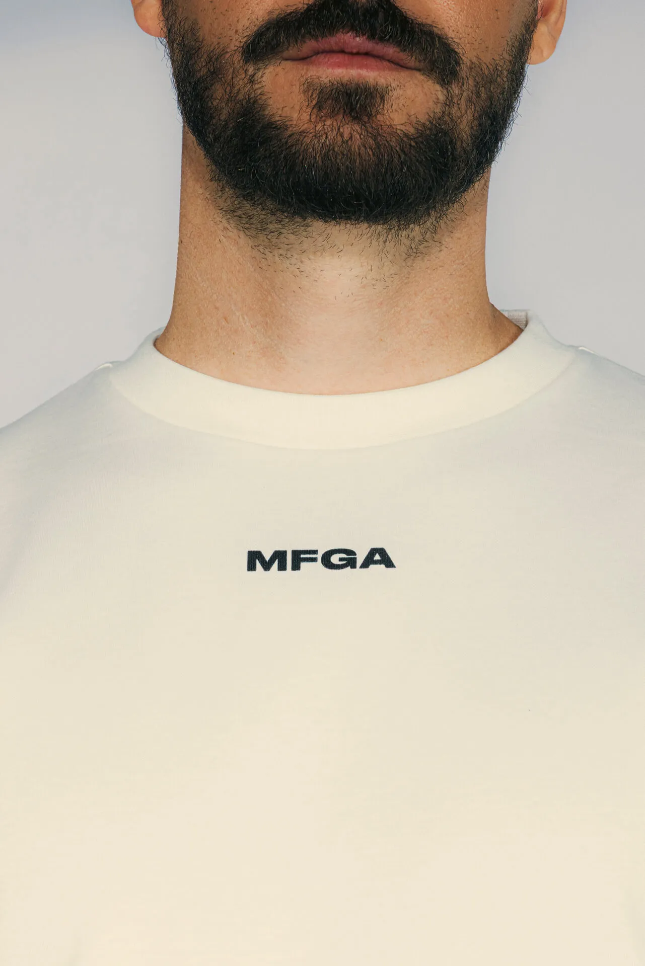 T-shirt girocollo in 100% cotone con logo MFGA stampato sul petto.